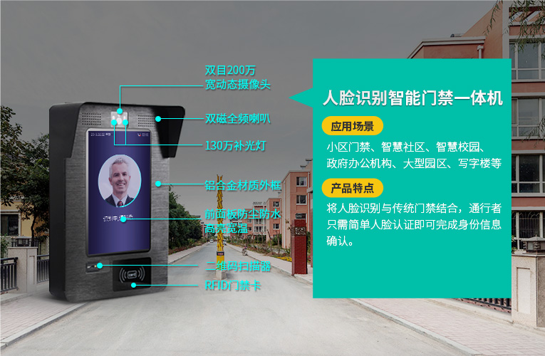 智能識別終端在不同場景的應用對設備有著不同需求,人員密集的地方要求可多人同步識別,快速移動的要求迅速鎖定識別等。人臉識別門禁一體機在社區樓宇的應用最重要的是符合門禁需要,對于設備,它需要具備以下幾個要求: